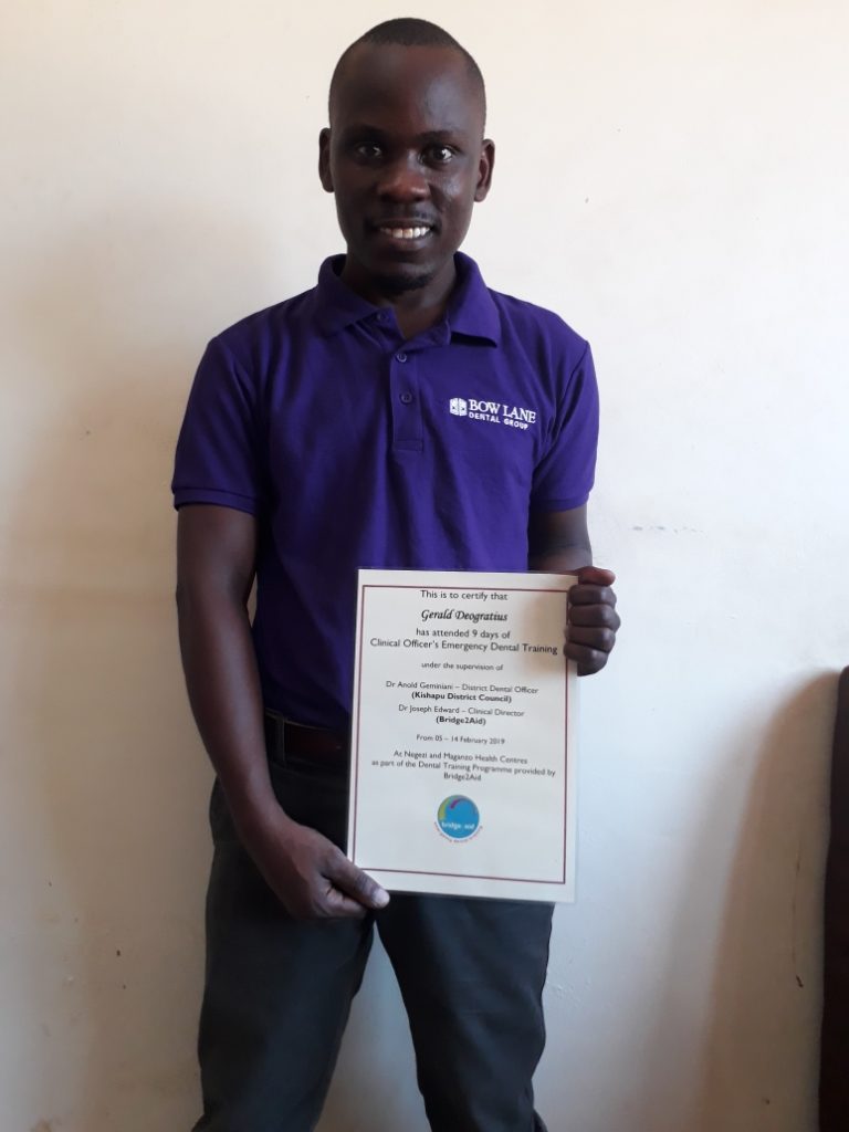 We are proud to announce our Rural Health Worker Gerald Deogratius has now completed his training with Bridge2Aid. He was enrolled in Bridge2Aid’s Dental Training Programme in Tanzania.