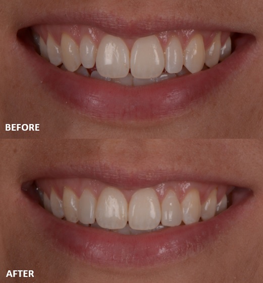 It also doesn’t involve damage or cutting down of the teeth. The bonding treatment is completed in a single appointment, then we review the treatment 1-2 weeks later to make sure you are 100% happy with the result.